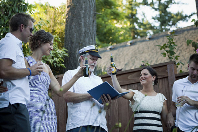 Jennifer Melle, co-owner of Hi, Friend Design in Portland, Oregon decided to change her last name along with her co-worker. As you can imagine, it was a good reason to throw a fabulous party – wouldn’t you? So the 2 rather lovely ladies teamed up to plan a surprise name change party for their other halves. One day their unsuspecting husbands were out playing golf and when both returned, voila! a surprise summer backyard ceremony that followed a beautiful summer party.