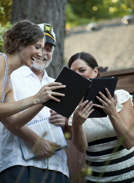 The sweetest thing: During the ceremony the girls officially changed their names on Facebook using their ipads.